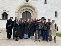 Студенты курса провели конференцию «Марфо-Мариинская обитель милосердия как явление нравственного служения и художественное явление» на территории обители. Они воочию увидели Покровский храм постройки архитекторов А.В. Щусева в стиле неорусского модернизма, росписи внутри собора художников М.В. Нестерова и П.В. Корина, скульптурный рельеф С.Т. Коненкова. Ребята познакомились с жизнью обители, служением монахинь и сестер милосердия.